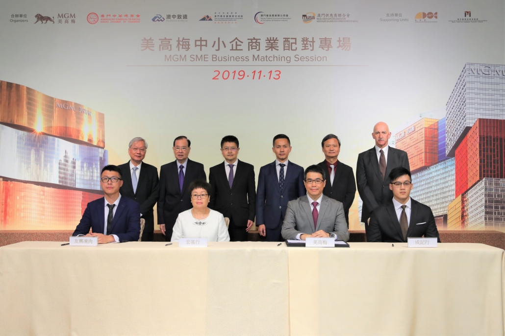 十一月十三日,美高梅再與中總和多個機構合辦第7次的“美高梅中小企商業配對專場”,參與是次配對專場的商戶主要來自廣告設計、設施管理、飲食及資訊科技等範疇。美高梅安排了逾20個專責部門的主管級人員與中小企代表一對一會面,讓約200名中小企代表介紹其產品、服務及了解美高梅的要求,促成合作,提高配對成效。